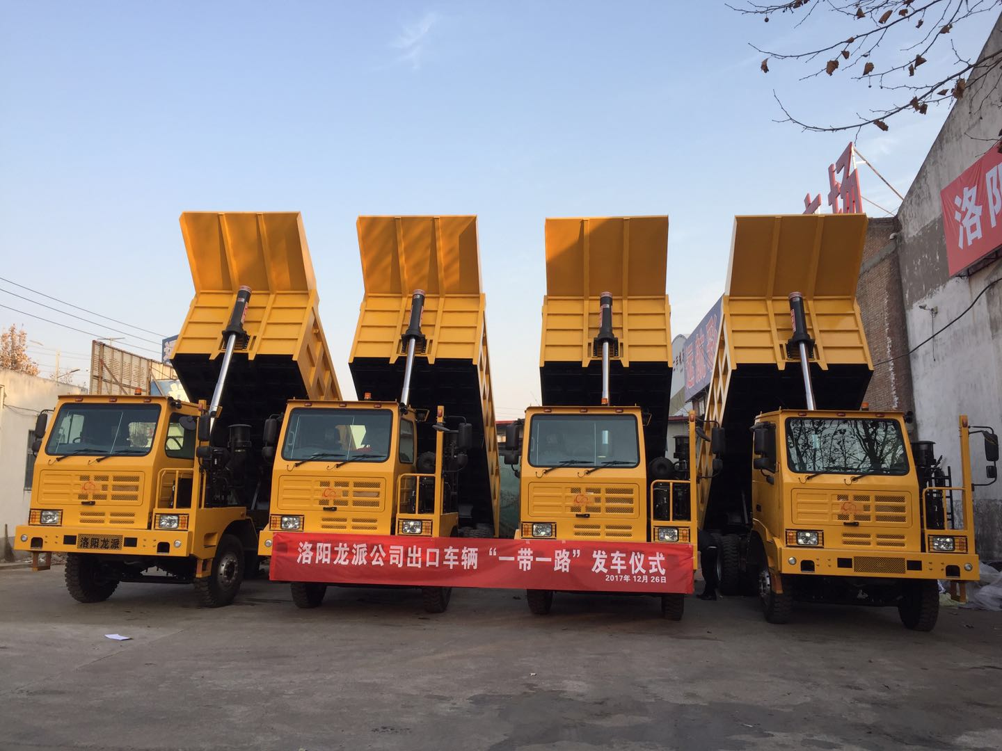 12月27日上午,一批為東南亞國(guó)家文萊某跨海大橋建設(shè)項(xiàng)目量身定制的非道路運(yùn)輸車,在洛陽(yáng)市老城區(qū)洛陽(yáng)龍派機(jī)械有限公司裝車起運(yùn)。